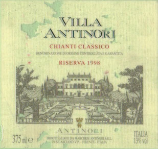 - (赤) イタリア: VILLA ANTINORI CHIANTI CLASSICO RISERVA (1998)