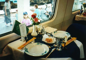 こういった食堂車は日本では見かけなくなりましたね。メニューは軽食ですが、勿論ワインも一緒に。ハーフサイズですが。。。