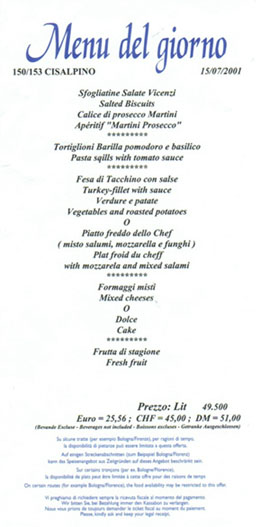 チザルピーノはイタリア国鉄とスイス鉄道の合弁で作られた特急列車で、イタリア国内やスイス、ドイツへの設定があります。日本の新幹線のようなものと思いますが、そこはヨーロッパの鉄道ですから、食堂車は標準で連結されています