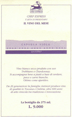 - (白) イタリア: CAPSULA VIOLA GALESTRO TOSCANA (2000)