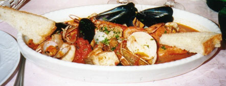 メインの『ZUPPA DI PESCE』、魚介類のスープ。シーフードのテンコ盛りですな。