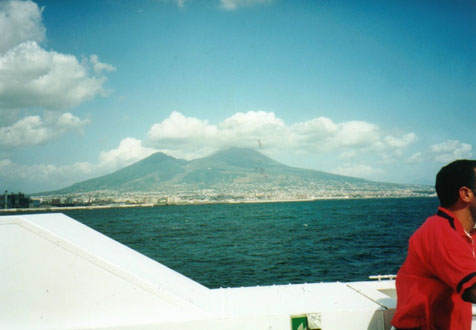 船が沖合に出ますと、雄大なヴェスヴィオ火山が望めます。子供の頃、何度もポンペイ最後の日を読んだのですが、まさか自分の目で見れるとは思っていませんでした。