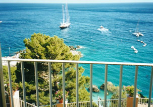 部屋のベランダからは真っ青な海が一望できます。崖の上に建っていますので、眺望は抜群です。