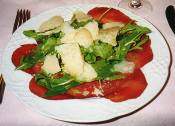 前菜は『BRESAOLA/RUGHETTA E GRANA/MOZZARELLA』、モッツァレラチーズ入りのサラダです。