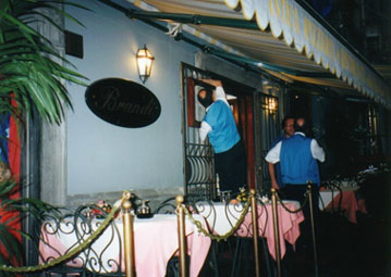 Whoever sets their eyes on the present day oeners, two fine looking elegant young men, as they closely follow the movements of their staff, readily satisfying all their customers' needs with utmost od discretion and courtesy, would never assoiate them with the famous "Pietro the Pizzamaker", standing shirtless and dishevelled, his brow bathed in sweat, behind his marble worktop as he beat his pizza dough into shape.