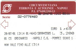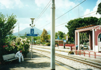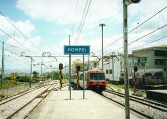 さて、ポンペイに向けて出発です。ヴェスヴィア周遊鉄道は、ナポリ中央駅からソレント行きとポンペイ行が出ています。私は行き先を確かめないままソレント行に乗り込み、途中で引き返してポンペイ行に乗り直すことになりました。
