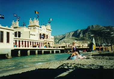 ディナーまで未だ時間があります。欲張って、モンデッロ海水浴場まで足を延ばし、シチリア海に浸かって(泳ぎは苦手なので)こようと思います。モンデッロ海水浴場は、パレルモの北側に聳える岩山(ペッレグリーノ山)の向こうに扇形の湾に沿って広がっています。夏にはパレルモ市民の海水浴場として非常に賑わっています。