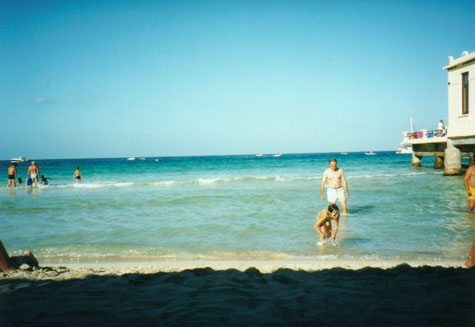 どう〜ね、この紺碧の海!結構、遠浅ですが。。。
