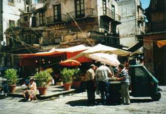広場の中にテントを張った屋台があります。大釜で煮た茹蛸を売っていますね。でも、テレビで観たおじさんではありません。他に茹蛸の屋台もないし、思い切って茹蛸おじさんのことを訊いてみます。片言の(訊く方も答える方も)英語で話したのでイマイチ詳細は分かりませんでしたが、どうも茹蛸おじさんは傷害事件を引き起こしたらしく、今は刑務所に収監中なのだとか。刑期を終えて出所するまでパレルモで待つ時間もありませんので、今回は残念ながら諦めることにします。