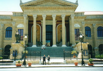 ヴッチリア市場の次にマッシモ劇場に向かいます。マッシモ劇場はパレルモの旧市街と新市街の境にあるヴェルディ広場に建つオペラ劇場ですが、私は別にオペラを観に来た訳ではありません。映画ゴッドファーザー・パート3の中に、劇場正面の階段でマイケル・コルレオーネが殺害された愛娘メアリーを抱きしめ号泣するシーンがあったので話のタネに見物しようかと思って。