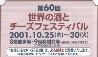 東京駅八重洲口・大丸東京店 第60回世界の酒とチーズフェスティバル