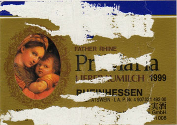 ま、お目出度い若宮様お誕生の折りに洗足まで来て買うのだから、何か意味のある銘柄はないかと思ってワインの棚を探していましたら、お馴染みのリープフラウミルヒの聖母の母子の絵が目に止まりました。何でもブルーボトルはロイヤルカラーなのだとか。。。ロイヤルカラーに母子の絵かぁ。。。甘口の白ワインですが、まあこの際いいでしょう。買って帰りましょうか。。。