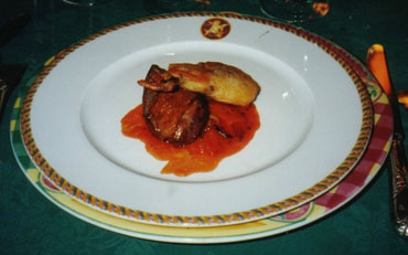 さて、いよいよ三ツ星レストランのディナーです。食前酒は別室で頂きます。