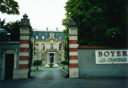 今夜宿泊するボワイエ・レ・クレイエールは駅からタクシーで10分ほどのところにあります。ミシェラン三ツ星のレストランですが、ホテルも併設しています。高い塀で囲まれた広大な敷地には、シャトーを思わせる白亜の建物と緑あふれる庭が広がっています。