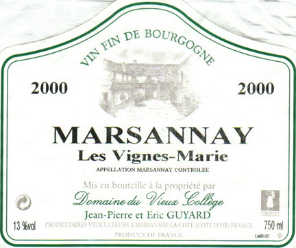 - (白) フランス: MARSANNAY LES VIGNES-MARIE (2000)