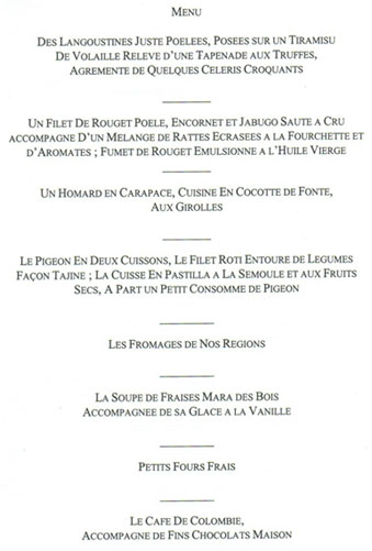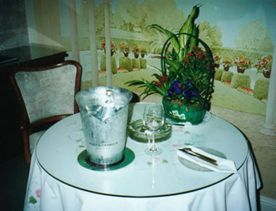 ふーむ、なかなかにコクのある深い味わいですね。エルミタージュ・デ・コルトンのメイン料理はとても濃厚でボリュームがあるのですが、前々采・前菜はお洒落なおつまみといった感じの軽いお料理が出ます。このボジョレーの白はこの前々采・前菜に良く合うのです。尤も、前々采・前菜はあくまで食前食ですから、如何に美味しくても全部を食べては後が続きません。私は後のお料理がどれほど凄いボリュームなのか知る由もなく、ボジョレー・ビラージュを飲みつつ前々采・前菜を全て平らげてしまったもので、メイン料理に入るころにはお腹がはちきれそうになっていました。こうなるとブルゴーニュの赤に行く気力が失せてしまいます。もう、後はディナーが一刻も早く終わることを願うのみです。あーーーあ、やっぱし、最初から赤にしておくんだったぁ。。。