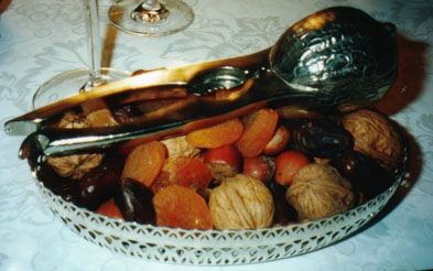 テーブルの横には乾きものドライフルーツとか胡桃が並べられたワゴンが置いてあり、好きなだけ取ることができます。またぁ、そんなにテンコ盛りにしちゃって。。。なんか後でお腹が膨れてきそうです。