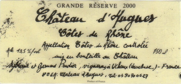 - (赤) フランス: CHATEAU D'HUGUES COTE DU RHONE GRANDE RESERVE (2000)