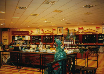 見学の最後は試飲タイムです。試飲室は豪華な大広間で、4−5種類のワインの中から一種類を選んで飲みます。軽いおつまみ(パンやサラミ)が付きます。一種類だけでは試飲になりませんが、遠慮のないお客さんにそうそうガブガブ飲まれてもねぇ。。。