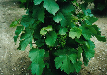 中庭には小さな葡萄畑があり、(多分)ガメイ種(ボジョレーヌーボーで使われる葡萄の品種)の葡萄の葉が青々と茂っていました。葡萄の房も大分大きくなっていますね。