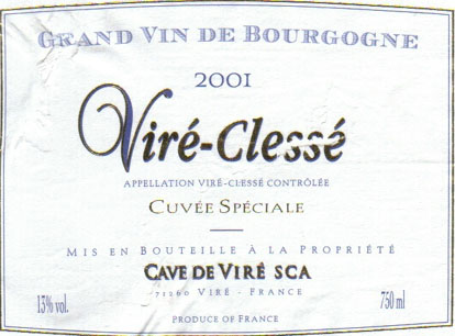 - (白) フランス: VIRE-CLESSE CUVEE SPECIALE (2001)