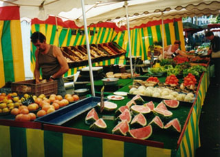 旬でカラフルな野菜や果物、チーズや総菜、自家製のジャムや蜂蜜など、見ているだけで楽しいです。