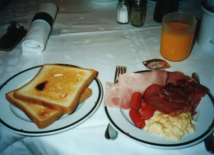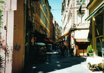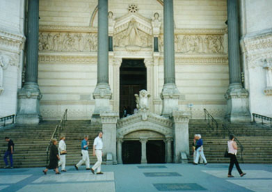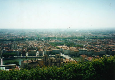 朝になりました。食欲復活です!今日は一日リヨンの市内観光を楽しみます。リヨンは、ローヌ川とソーヌ川に挟まれたフランス第二の都市です。ローマ時代からの古い歴史を誇るこの町は、有名な服飾と料理だけではなく、音楽や絵画、演劇など文化の香りも一杯です。リヨンの市街地全体を見下ろせるフルヴィエールの丘からの眺望は、川によって仕切られた統一感のある美しい新市街と、まるで迷路のような旧市街の対比を際立たせています。