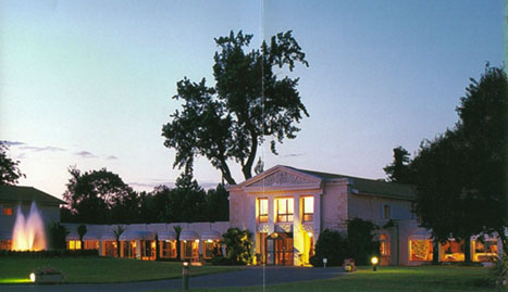 さて、今夜は日本で予約しておいたルレ・ド・マルゴーに泊まります。マルゴー村にあるホテルの敷地は広大で、リゾートホテルのような感じです。館内の長い廊下にはワインが収められたケースが並んでいます。