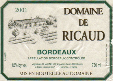 - (白) フランス: DOMAINE DE RICAUD BORDEAUX (2001)