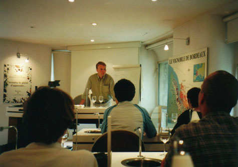 今日は一日ボルドー市内を見物します。せっかくですので、本場ボルドーでワインセミナーに出席してみようと思います。セミナーといっても参加資格は一切なし。当日申し込んで1時間ほどワインの講義を聴くというだけの気楽なものです。教室は理科の実験室のような感じで、10人位の生徒さんが集まっていました。最初にワインの講義があります。フランス語の講義なので私にはチンプンカンプン。講義の時間は爆睡し、ちゃっかり試飲の時だけ目を覚ましてワインを楽しみました。学校の授業を思い出します。。。