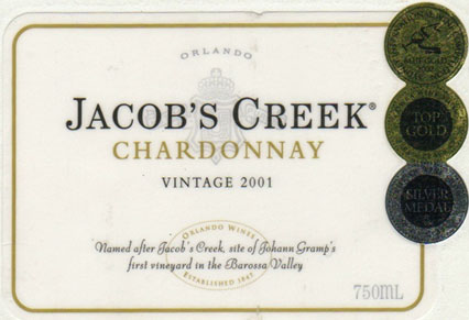 - (白) オーストラリア: JACOB'S CREEK CHARDONNAY (2001)