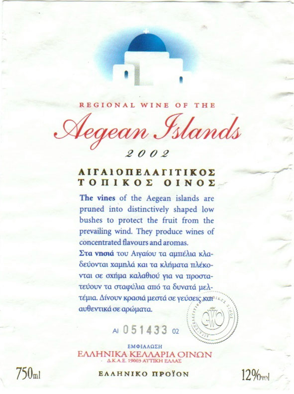 On the Aegean islands, vines are pruned into distinctively-shaped low bushes to protect the fruit from the meltemi, a frequent north-easterly wind. Low yields of super-ripe grapes result in highly flavoured and concentrated wines. Serve with roasts, barbecues and savoury dishes.