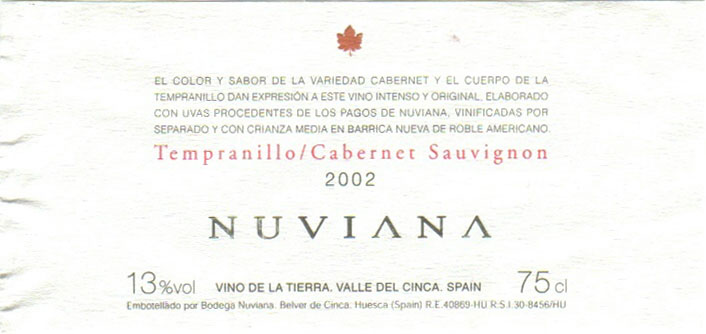 - (赤) スペイン: NUVIANA TEMPRANILLO/CABERNET SAUVIGNON (2002)