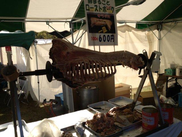 おつまみがなくても、芝生を取り囲んだテントではいろんなお料理が売られています。あるテントではローストポークが売られていましたが、豚クンはあばら骨だけになっていました。こんな姿になってトンでもないと嘆いていたのでしょうか?
