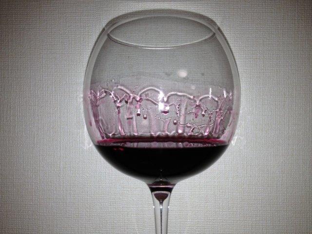 今まで数千本のワインを飲みましたが、グラスの内側にこんなに涙を溜めたワインは出会ったことがありません。「深紅の涙」と命名します。