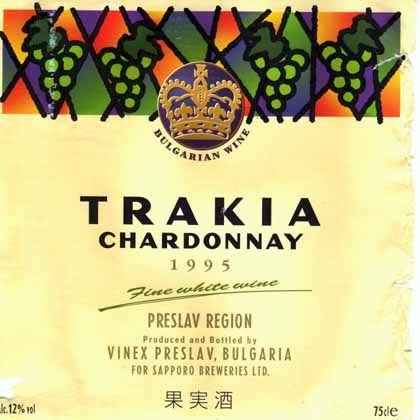 - (白) ブルガリア: TRAKIA CHARDONNAY (1995)