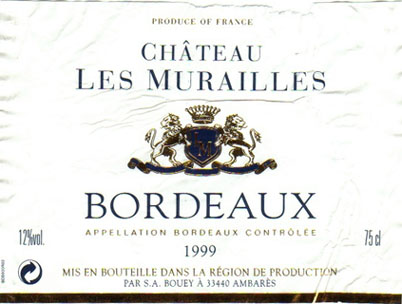 - (赤) フランス: CHATEAU LES MURAILLES BORDEAUX (1999)