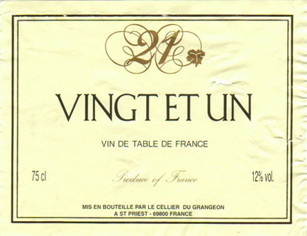 - (赤) フランス: VINGT ET UN VIN DE TABLE