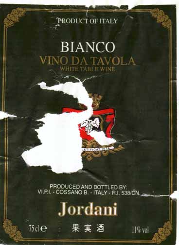 - (白) イタリア: BIANCO VINO DA TAVOLA - JORDANI