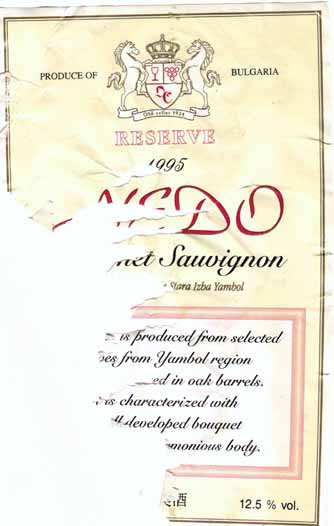 - (赤) ブルガリア: NEDO CABERNET SAUVIGNON RESERVE (1995)