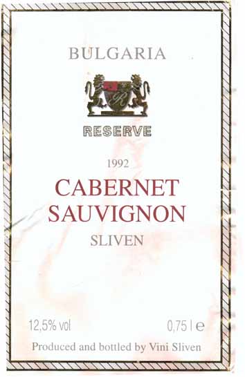 - (赤) ブルガリア: SLIVEN CABERNET SAUVIGNON RESERVE (1992)