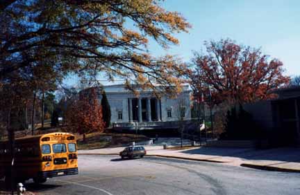 アトタンタには沢山の観光名所がありますが、私ならこの『サイクロラマ:Cyclorama』をお勧めします。巨大な円形の建物の中心に観客が座る椅子があり、これがゆっくりと回転するのです。内部には南北戦争時代の絵巻模様が実に忠実に再現されます。勿論全てが精巧な絵と模型なのですが、あまりに真に迫っているためまるで歴史の中に溶け込んだような錯覚におちいります。どんなに目を凝らしても造形物だとは思えないのです。終わって暫くの間は感動で席を離れられませんでした。写真の建物がサイクロラマの入っているものです。隣がアトランタ動物園であるため子供の入場者も多く、隅の方に停まっているバスはスクールバスです。