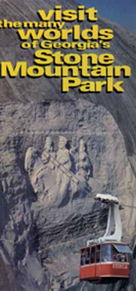 アトタンタ市を取り巻く環状道路285号線から少し東に入ったところに花崗岩のレリーフで有名な『ストーンマウンテンパーク』があります。殆ど見所はレリーフを見るためのケーブルカーに乗るためだけといってもいいくらいのところです。写真でみてもその大きさは実感できないと思いますが、ケーブルカーの窓に迫ってくる迫力はやはり実際に行ってみないとなかなかわかりません。自分のカメラでも撮ったのですが、対比するオブジェクトがないと感じが出ないと思いパンフレットの表紙をお借りしました。一枚の花崗岩で出来ている岩山の頂上に立つとその高さがまた実感できます。はるかかなたにアトランタの街が広がり、緑広がるジョージアの豊かな自然を満喫できます。公園には蒸気機関車も走っていますので時間のある方は乗ってみられるといいのではないでしょうか。