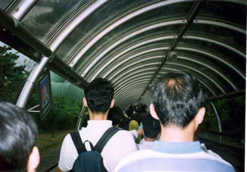- 『海洋天地』のお隣には『山上機動城:Headland Rides』があります。『山上機動城』には大人も子供も楽しめるジェットコースターやゴンドラがあります。どこの国でも同じですが、キャーキャーと大変な悲鳴です。で、海洋公園にはもう一つの見所があります。『海洋天地』とふもとの『集古村』を結ぶ長大なエスカレータです。4−5本に分かれているのですが、全部足すと世界一の長さになるのだそうです。なにしろ山のてっぺんからふもとまで一気に下る(あるいは逆に登る)のですから。『集古村』には数百年前の中国の王宮が復元されています。お茶とかお菓子を頂いたり、胡弓の音に耳を傾けたりするのも良いでしょう。でも胡弓の曲が『コンドルは飛んで行く』だったのにはびっくりしました。。。